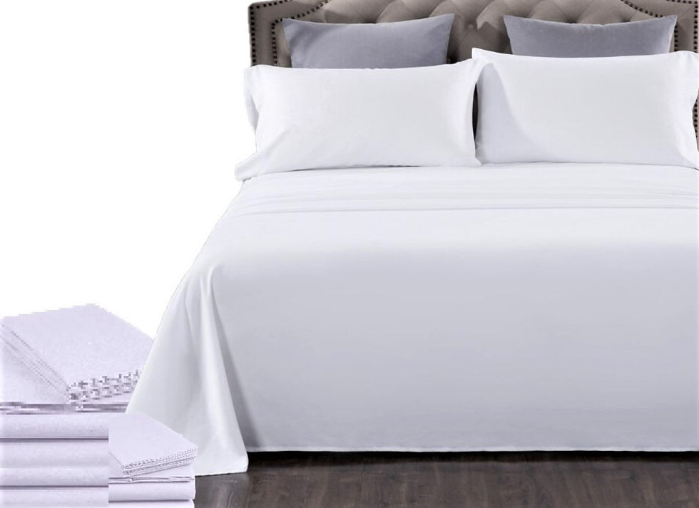 LOT DE 4 - Drap Plat blanc 225 x 255 cm en Microfibre Brossée